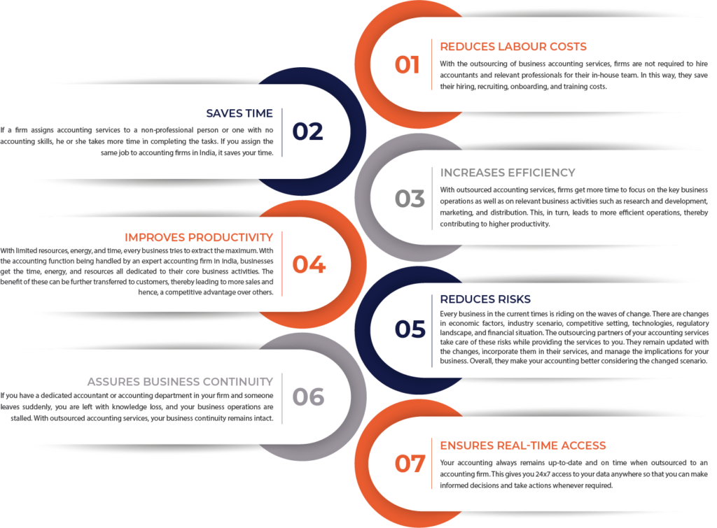 The main aim behind outsourcing any non-core business process is to reduce costs, achieve more efficiency, and save time. Businesses outsource accounting services for the same reasons. The key benefits that businesses achieve with accounts outsourcing are: